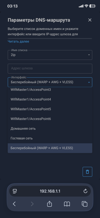 @eralde @Le ecureuil @Anna_ Многоуважаемые разработчики, если реально и не крайне трудозатратно: можно ли приделать рядом с каждым внесенным dns-сервером (будь то plain, doh, dot или ipv6-dns) что-то типа тумблера с функцией использовать/не использовать? Ну и статус например отображать Используется / Не используется для настоящего времени. По логике что-то типа закомментированной строчки) Сейчас чтоб что-то поменять надо полностью все удалить к чертям, а потом после каких-то манипуляций опять вносить... что вызывает в процессе проверок чего-либо некоторые неудобства по сравнению с тумблером))) Еще 1 вопрос - в настоящее время при использовании doh/dot никакой информации о них нет в карточке Интернет, в отличии от обычных dns... нет ли идей/возможности как-то отображать их на дэшборде в указанной карточке?21 балл