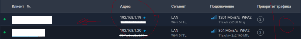 Было бы удобно на какой-то из страниц иметь собранную воедино информацию по хостам. К примеру есть таблица с подключенными клиентами, в ней в строке: имя хоста, IP, способ подключения, приоритет, может быть ещё что-то (как в Списке клиентов). Нажимаем на строку конкретного клиента и вниз раскрывается/разворачивается блок с информацией из Анализатора трафика приложений по этому клиенту, т.е. сразу видим что активно, что запущенно, скорость. Раскрываем дальше конкретное приложение или даже прямо здесь же видим и все IP адреса и порты по которым установлены эти соединения приложений (на основе информации из Активные соединения). Всё это в связке с информацией Анализатора трафика приложений. Где-то здесь же ссылки и переходы к настройкам хостов, к меню Анализатора трафика приложения и к Активным соединениям. Возможно где-то здесь же добавить и возможности управления этим трафиком (Межсетевой экран, Фильтр приложений). Быстро что-то заблокировать из активного. В общем нужна подобная связанность в иерархическом виде. Сейчас всё это присутствует, но разбросанно по всему интерфейсу в виде отдельных инструментов. Если когда-нибудь соедините всё подобным образом, было бы интересно. Пусть даже в виде отдельного компонента прошивки со всеми необходимыми зависимостями.3 балла