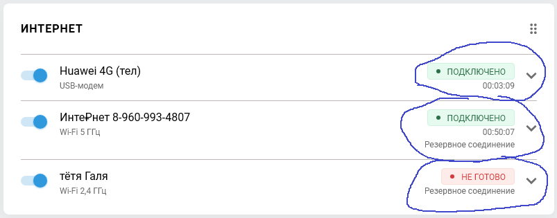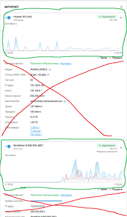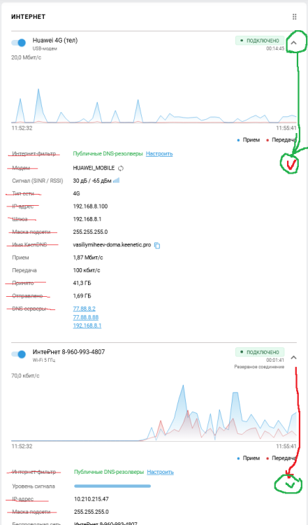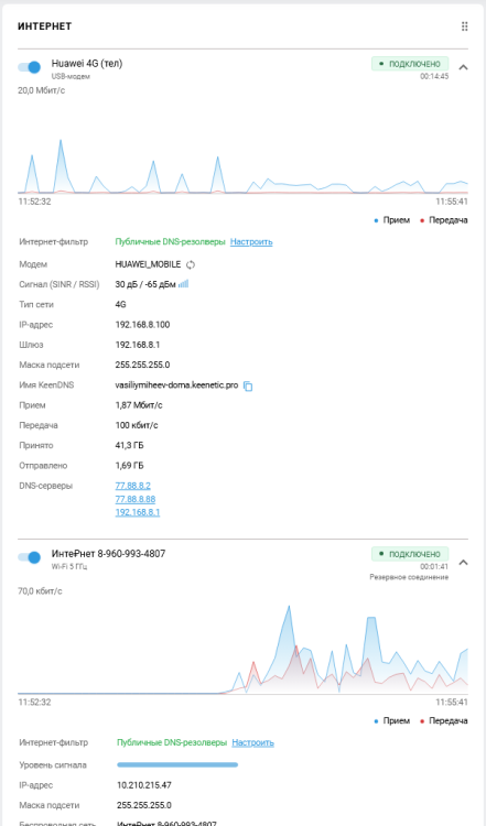 У нас проблемы с Интернетом (военный аэродром рядом), то один оператор заглохнет, то второй, то третий. В итоге пользуюсь "Многопутевым режимом" (выручает), разработчикам бы его более подробно рассмотреть, чтобы и настроек в нём было больше, и я его вообще бы в отдельную закладку прикрутил. Представьте VPN между роутерами сразу через несколько сетей, это же мечта. Особенно если у одного из них (на работе) Выделенка, а дома безпроводной, но сразу 3 вышки операторов на крыше. И тут многопутевой VPN подключаеться к рабочему, через 3 модема одним каналом. Скорость МАКСИМУМ. Но очень неудобно создана плитка, где если её развернуть, то кроме графика, появляеться очень много избыточной информации. И приходиться, чтобы видеть 2 графика, уменюшать до 60%, а то и до 40% Но если хочешь увидеть 3 графика, уменьшать приходиться даже до 20%, да там даже разглядеть ничего нельзя. Можно добавить скрывающую галочку (с шестерёнкой), в которой я бы мог по выбору скрывать не актуальные для текущего в нужный мне момент строки. Или на пока хотябы Оставить видимыми графики прогресса использования Интернета. Ведь если свернуть, то я вижу что подключено, и сколько. Это очень мало, да можно галочку эту не только 2х вариантную, но и 3х и 4х вариантную сделать, как на погонах, галочка с подчёркиванием, или галочка с двумя подчёркиваниями. Например в один из вариантов прикрутить старый ИНТЕРФЕЙС, по некоторым плиткам старого, очень скучаю...