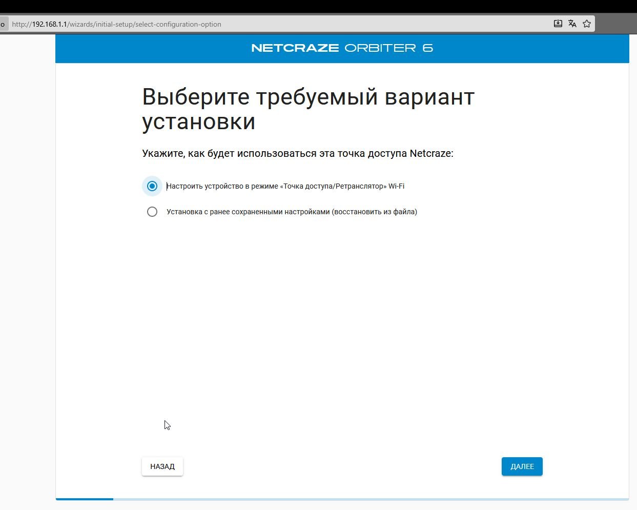 прошивка 4.2.6.3 1. В режиме Ретранслятор в Мастере настроек нет выбора подключения ретранслятора по wifi(вариант усилителя для mesh) с выбором сети для подключения и т.д.. Необходимо пройти весь Мастер и обязательно задать пароль для admin, потом через веб можно настроить подключение по wifi к роутеру, но нужно удалять пароль у admin в CLI для захвата в wifi-систему. 2. В режиме Роутер 1) После смены режима работы в веб-интерфейсе и перезагрузки Мастер предлагает настроить в режиме "Точка доступа/Ретранслятор", но при этом остается режим роутера, если пройти Мастер(наверное название режима нужно указать "Роутер" в Мастере) 2) Нет кнопки выхода из Мастера