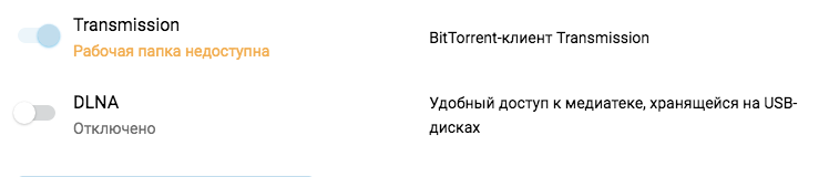 Сейчас если отключить диск, на который качаются торренты, то сам торрент клиент в приложениях выключить будет нельзя (ос 4.3.6.2), ползунок неактивен и рядом написано "Рабочая папка недоступна", скриншот ниже. Если какой-то непреодолимой технической преграды нет, то хочется управлять включением/выключением приложений независимо от доступности винта с рабочей папкой. -