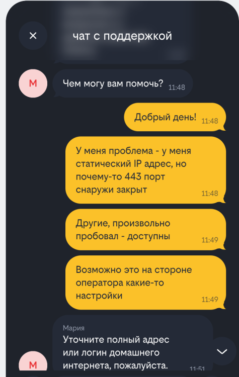 1. Я просил вот что Далее меня переключили на технический отдел, по быстрому проверили что я не идиот и понимаю что хочу, далее запросили паспортные данные и отключили файерволл: Возможно эту же манипуляцию можно сделать и самостоятельно в личном кабинете, но он настолько "удобный", что я статический IP адрес два дня себе подключал )