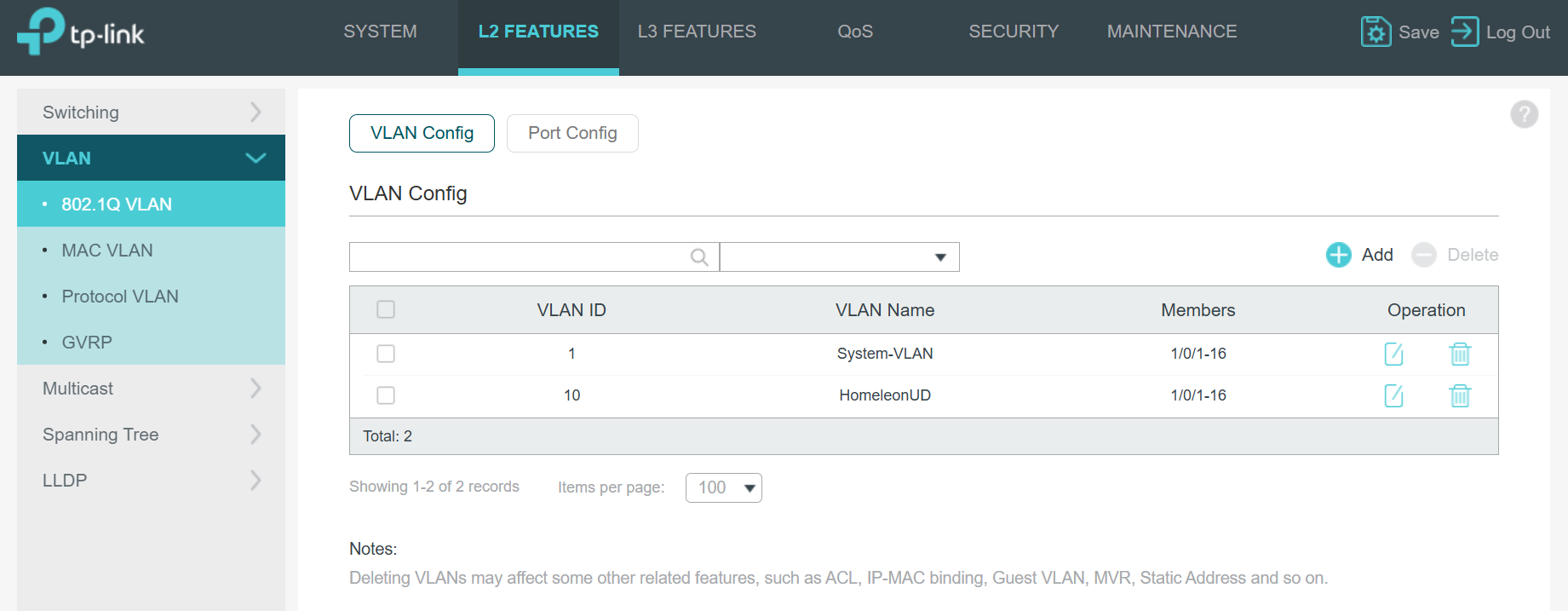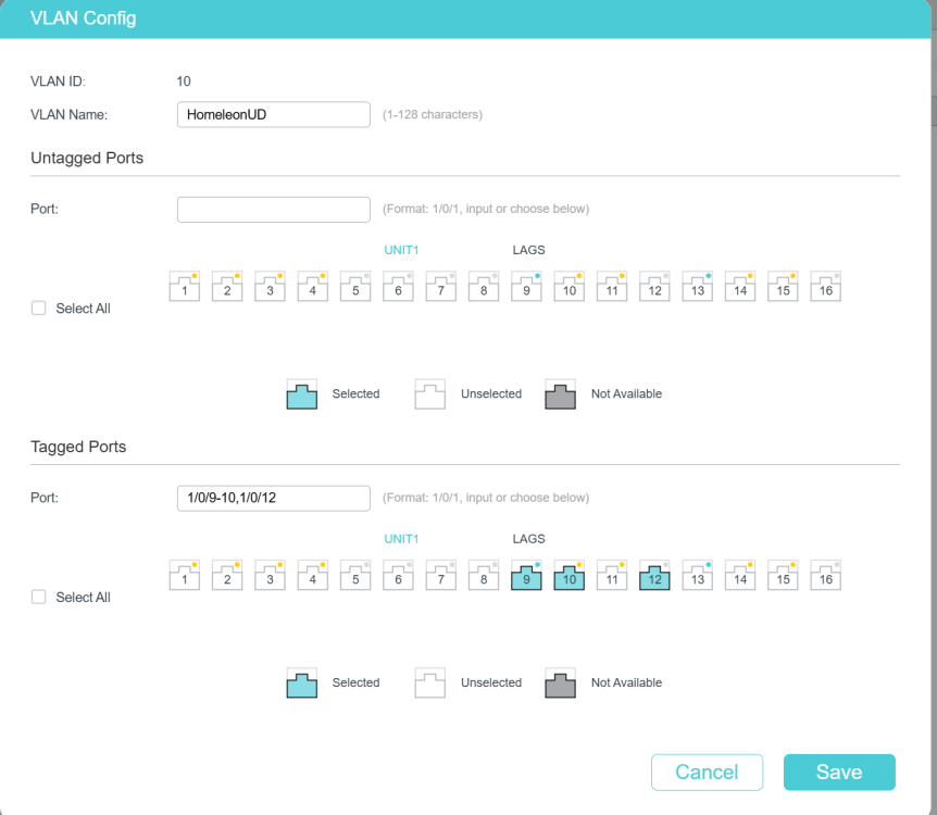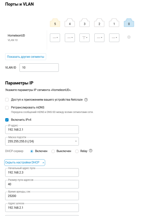 6. К сожалению нет. Через управляемый коммутатор TP-Link SG2016P. Если взять настройки роутера, то у меня vlan 10 для сегмента. Приложу скриншоты домашнего сегмента и дополнительного. На контроллере к 3 порту подключен коммутатор. Домашний: На коммутаторе пытаюсь настроить VLANы. 9 порт подключен к 3 порту на основном роутере. 10 и 12 идут на ретранслялторы. Но пока ума не очень хватает, пытаюсь в интернете найти, возможно ли на этом коммутаторе прокинуть 2 VLAN на 1 порт. Играюсь с настройками. Завтра попробую для начала напрямую соединить роутеры, чтобы проверить выдаются ли IP адреса. Видимо по тплинку нужно в профильный форум идти.