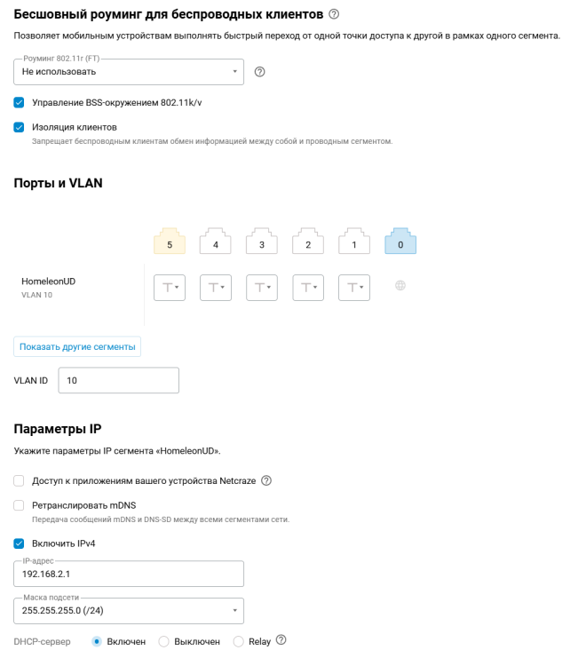 Всех приветствую Подскажите пожалуйста, как правильно настроить сегменты. Есть Ultra (NC-1812), Sprinter SE (KN-3712) и Sprinter (KN-3710). Настроена MESH сеть домашнего сегмента. Ретрансляторы подключены проводом, MESH работает через Ethernet backhaul, беспроводная транспортная сеть отключена. Создаю сегмент Умный дом, с wi-fi 2,4Гц, DHCP 192.168.2.1. Беру проверяю и подключаю к новой сети телефон, и если подключение идет к контроллеру (Ultra), то все ок, телефон получает IP допустим 192.168.2.18. Но если я в настройках ставлю, что необходимо подключиться к ретранслятору (напомню, они подключены проводом и имеют IP 192.168.0.х), то телефон не подключается к Wi-Fi, висит на "получение IP". Такая же история если включить гостевой сегмент. Куда копать, что делаю не так?