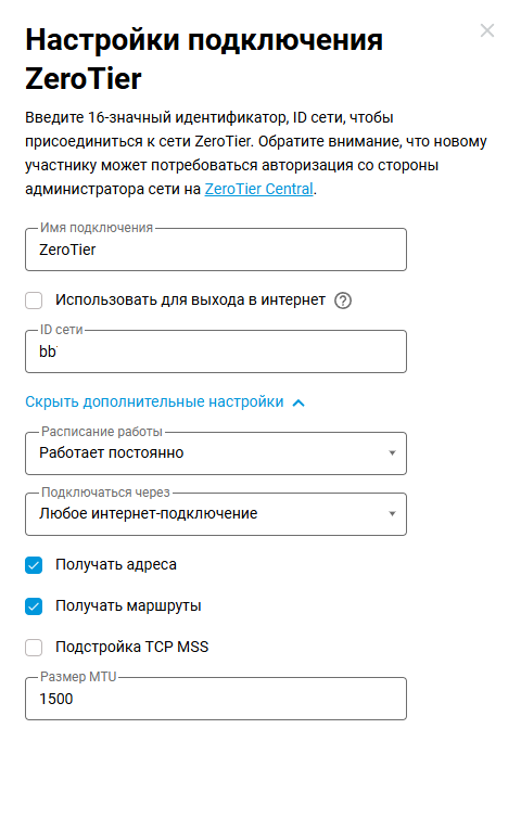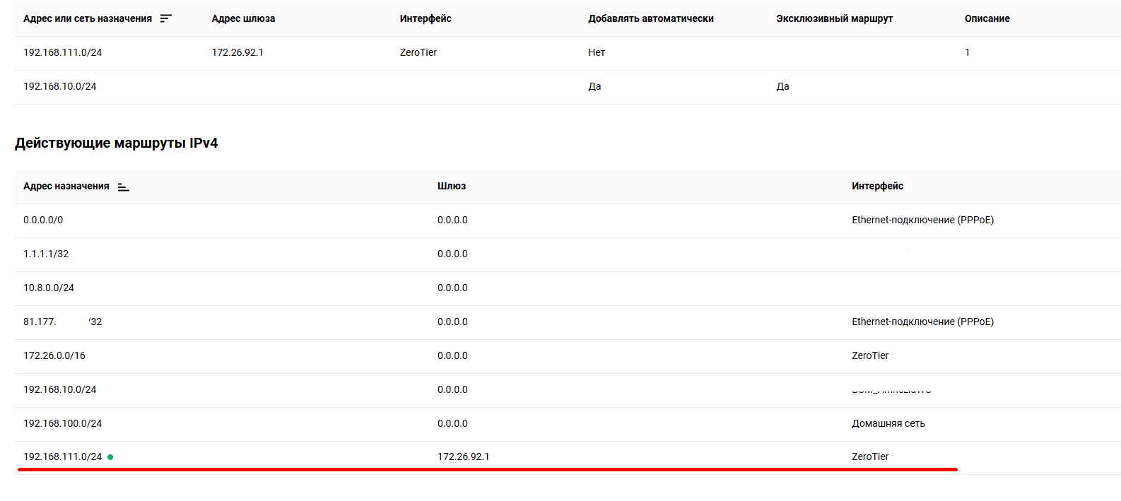 zerotier и его маршруты.