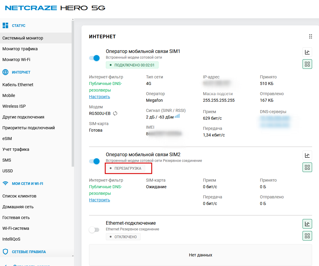 NC-4110 интерфейс второй sim постоянно показывает "перезагрузка"