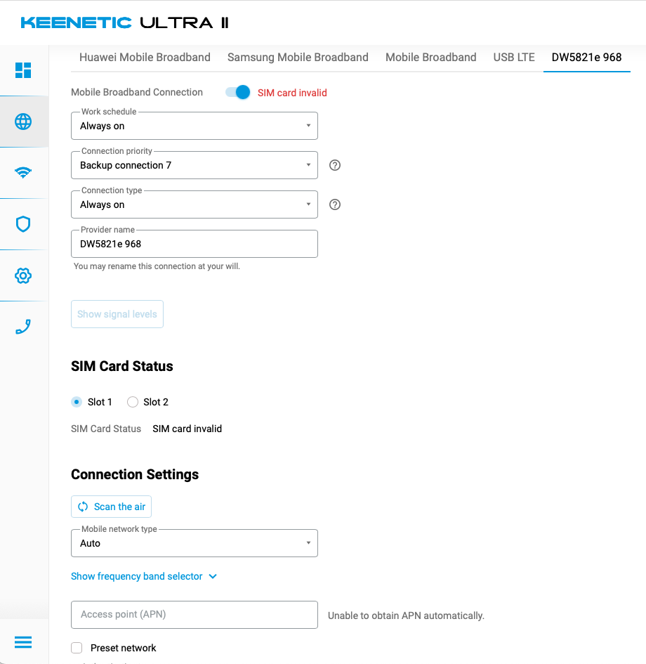 На модеме DW5821e t77w968 - на 5.0.4 и 5.0.5 - SIM card invalid