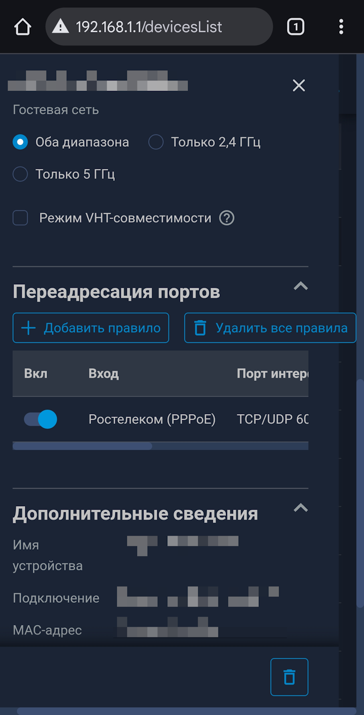 В мобильной версии кнопка "удалить все правила" выходит за пределы окна и создает горизонтальную прокрутку: