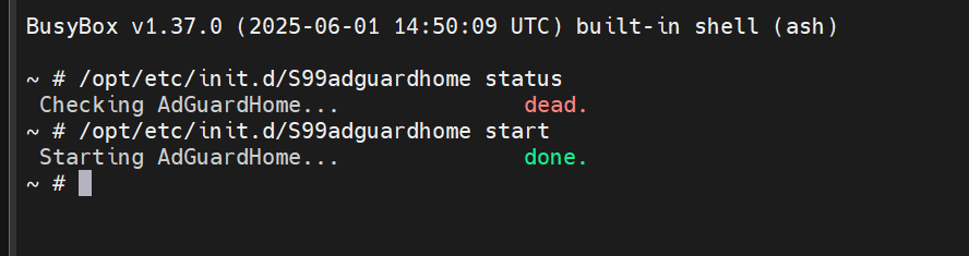 перезапустить AGH `/opt/etc/init.d/S99adguardhome restart`